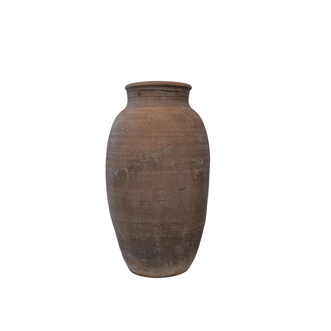 This vintage olive jar embodies Mediterranean authenticity with its distinctive earthy glaze and weathered patina. Each piece showcases natural color variations and size differences, honoring its artisanal origins. Versatile in purpose, it serves beautifully as a sculptural shelf accent, an elegant vessel for fresh blooms, or a refined organizer for kitchen essentials. A timeless addition that seamlessly blends artistic presence with practical elegance.