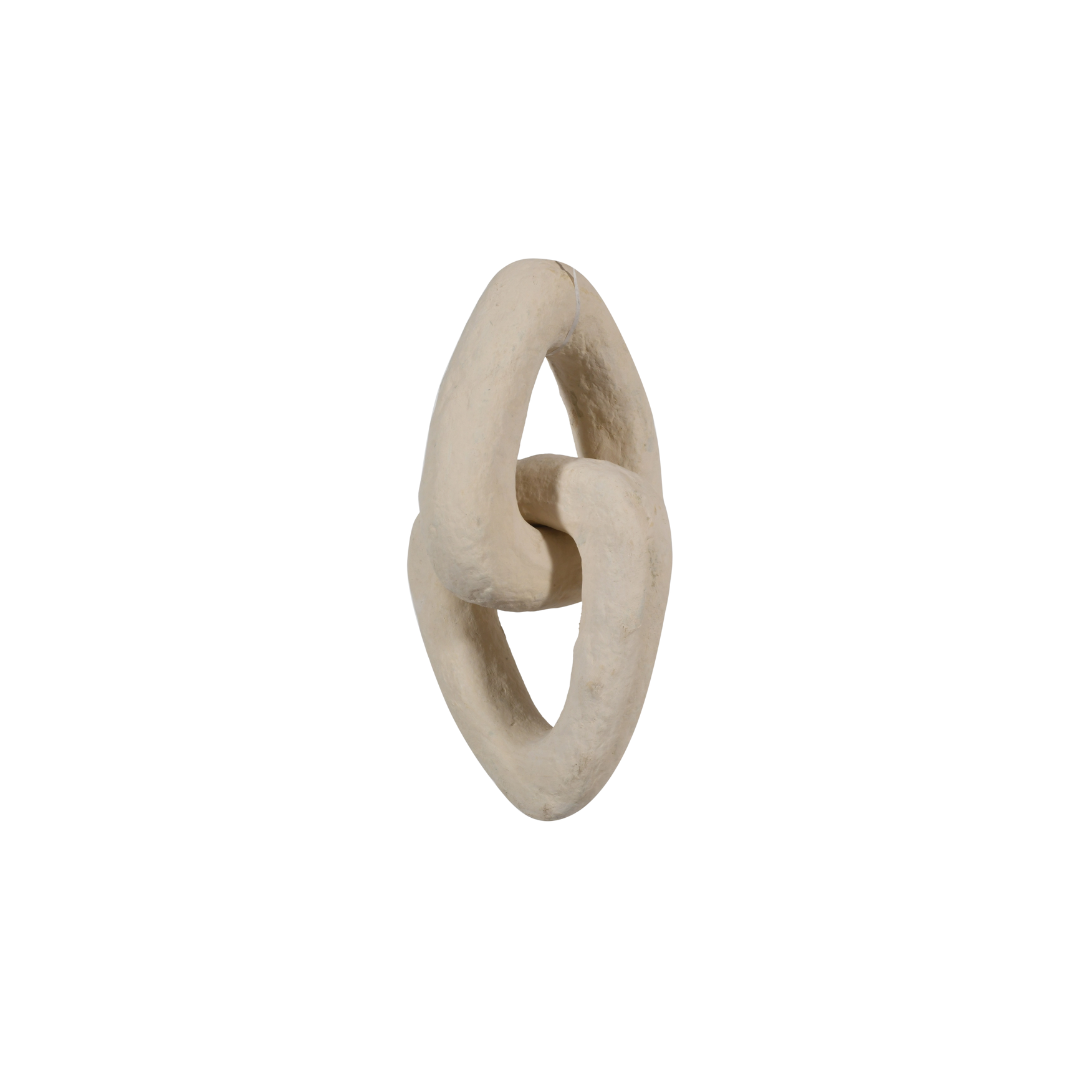 The Linus Chain is a decorative accent crafted from paper mache in a soft off-white finish. Lightweight yet sturdy, this versatile piece works beautifully displayed on shelves, mantels, or tables, infusing your space with understated sophistication and visual interest. An ideal choice for those seeking distinctive, handmade décor that elevates any room with refined character.